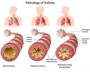 Asthma is a chronic illness which involves the airways inside the lungs. When someone has asthma, these airways become inflamed and cause difficulty in breathing. Above the inflamed airways, there is an increase in the amount of mucous produced in the lungs. There are many different types of asthma: